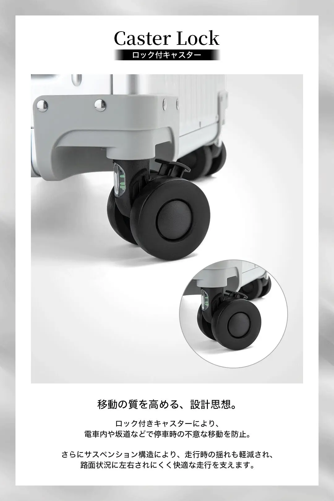- サスペンション付きダブルキャスターを採用。(静音性・360度回転)