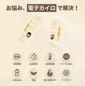 ・Type-C急速充電:約3時間でフル充電可能。繰り返し使えるエコカイロ