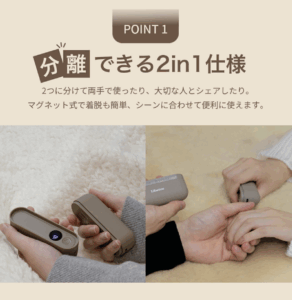 Libeteeの提案する繰り返し使える電子カイロは、デザイン性と機能性を兼ね備えた次世代電子カイロです。両手を同時に温められる分離式設計で、手のひらも指先もすぐにポカポカ。分離式なので友達やカップルでシェアが可能。