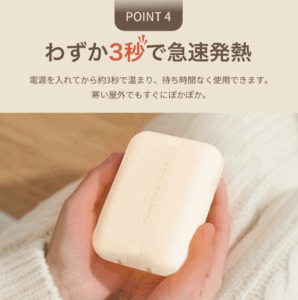 起動後3秒で発熱し、冷え切った手をいつでもどこでもすぐに温めます。通勤・通学・オフィスワーク・アウトドア・旅行など、冬のあらゆるシーンで活躍。